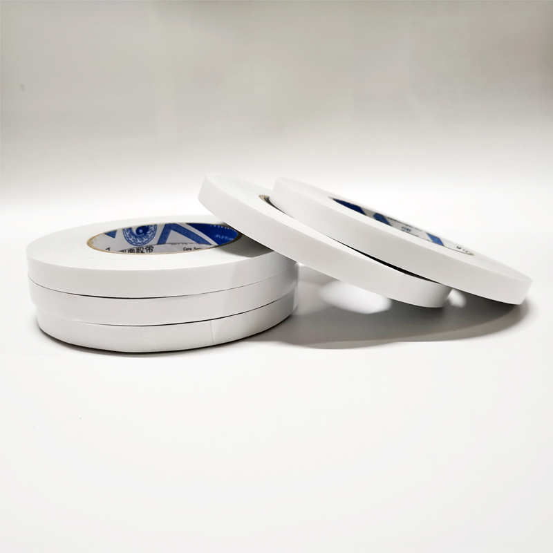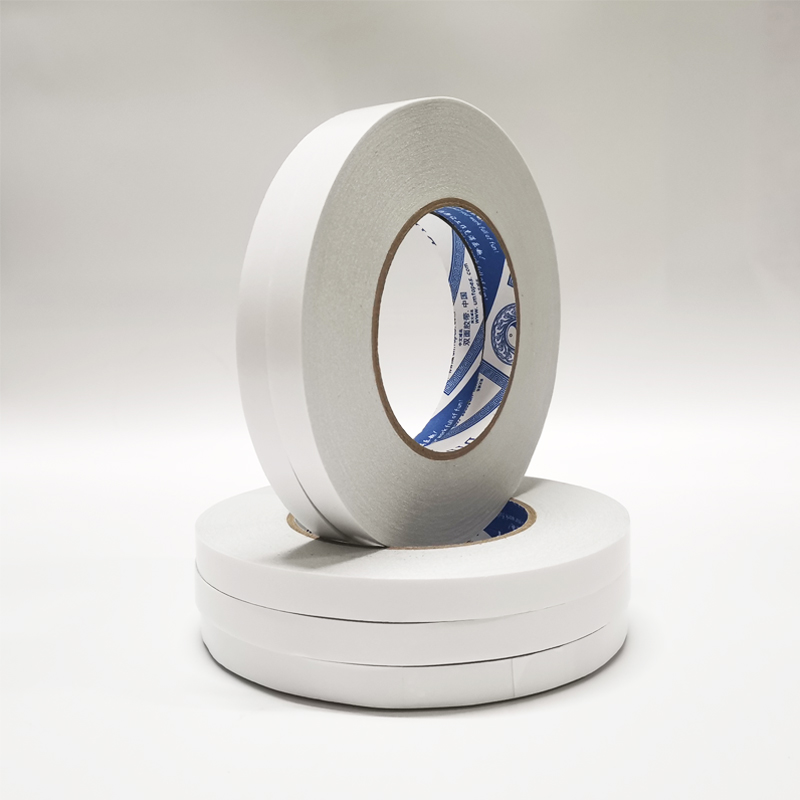 棉纸基材,贴合离型纸面是弱粘面,另一面是强粘面。在使用中起到临时固定的作用,可方便地取下粘着物体。